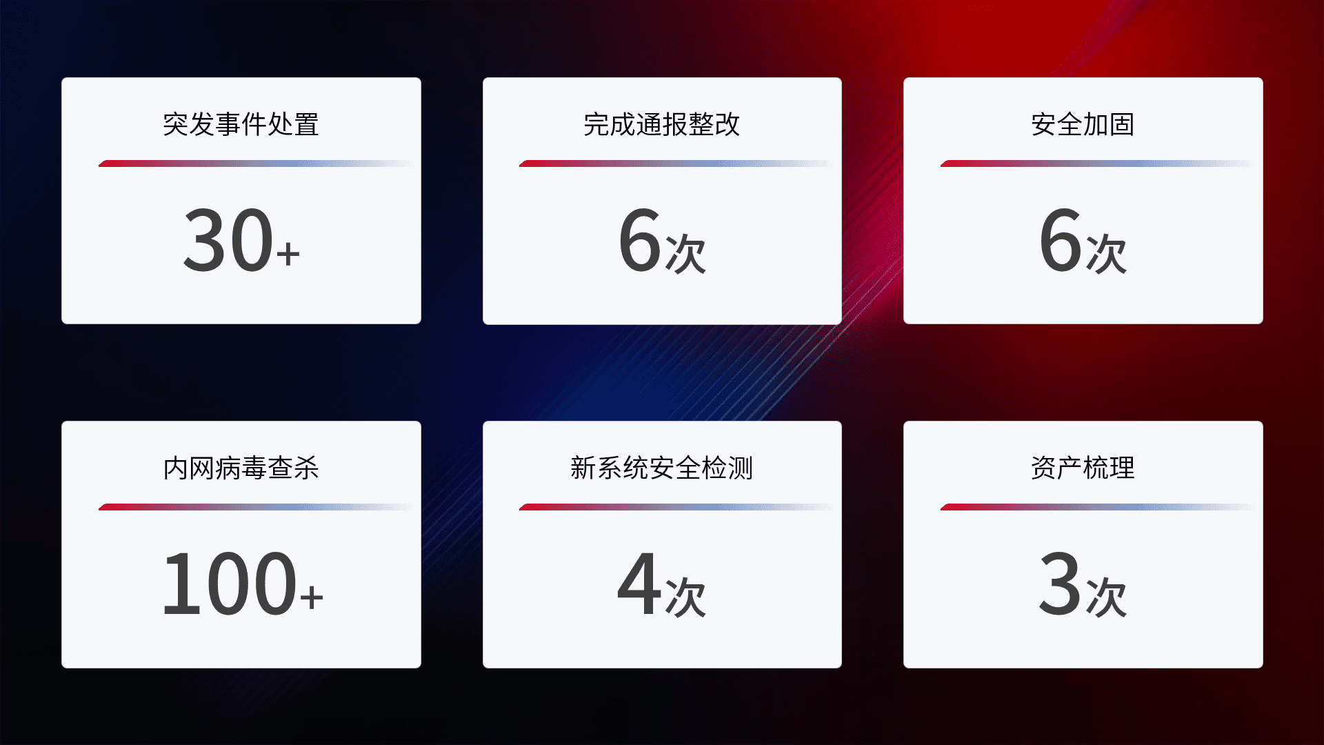 网络安全加固与风险管理:通过技术加固手段,,,,如加强区域隔离,,,,缩减攻击内网横向移动的范围;优化现有网络安全管理制度,,降低网络威胁暴露面,,,,减少被黑客攻击的可能性。。